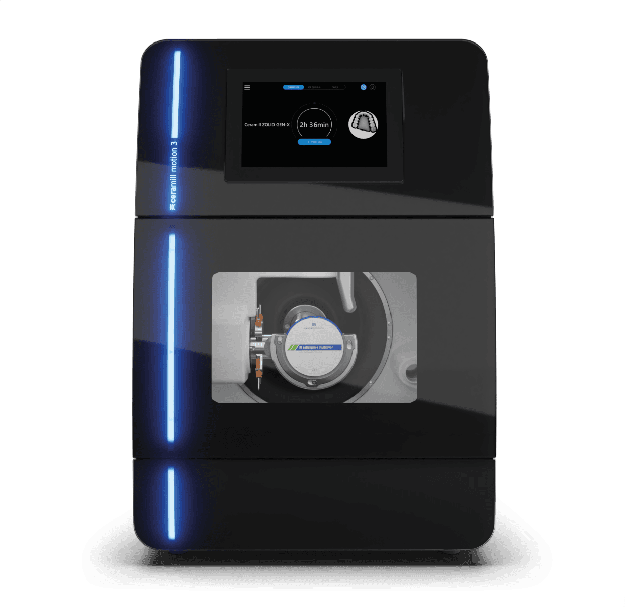 The Amann Girrbach Ceramill Motion 3 combines convenience and excellence to supercharge your workflow. This is the most intelligent 5-axis hybrid milling machine that enables an end-to-end digital workflow while combining wet and dry processing in a single machine. Guided workflows make cleanup and maintenance a breeze and tool and holder management safeguard you and your team against mix-ups. An intuitive interface guides users safely through workflows and auto-calibration technology saves time. Automated tool management gives you real-time insights into your resources, boosting sustainability and maximizing value. Semi-autonomous operation allows you to use your time to focus on your profession, with no compromising and no rework.