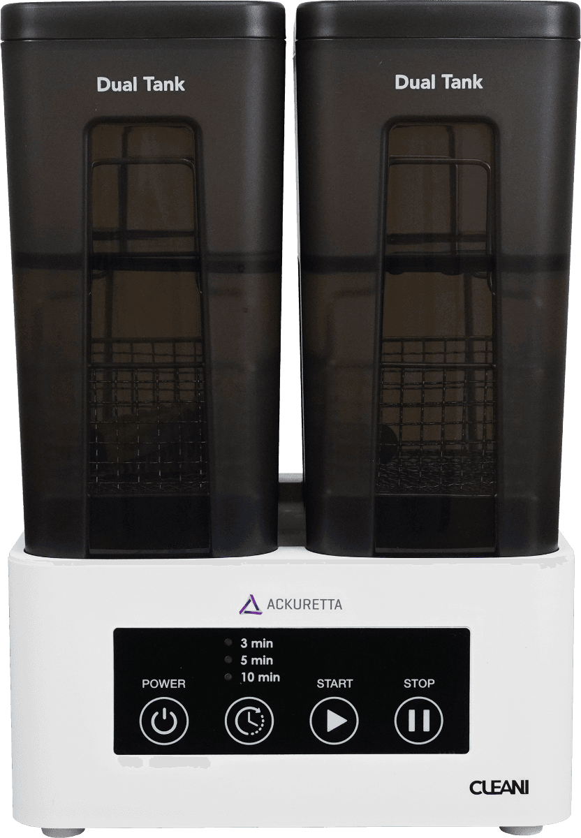 CLEANI is designed with dual tanks for a two-stage cleaning process that allows for heavy and fine washes. With a workflow that’s three times faster, CLEANI consumes 50% less alcohol than a manual wash and effectively removes 90% of uncured resins from prints.