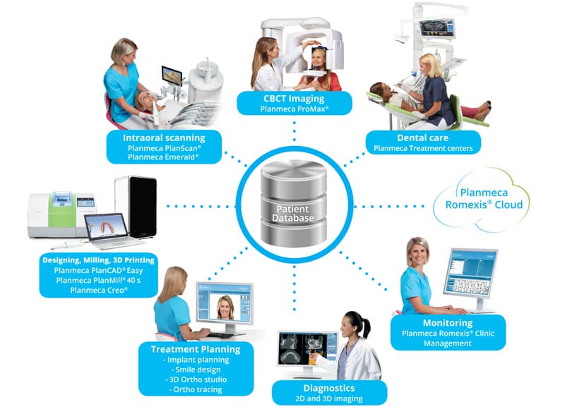 Planmeca has a history of innovation and leadership for providing dental solutions–and this innovation will continue going forward. A powerful example of our current industry leadership is our Planmeca Romexis® open architecture software for easy third-party vendor connectivity. Planmeca developed this innovative software to network all of our technology together, and combine 2D and 3D imaging and complete CAD/CAM workflow from intraoral scanning to prosthetic designing and milling in one software. HOW PLANMECA ROMEXIS® SOFTWARE BENEFITS YOUR PRACTICE One of the great benefits of Planmeca’s Romexis open architecture software is that it’s a unique all-in-one concept, facilitating the integration of most digital equipment at your practice. One easy-to-use interface is