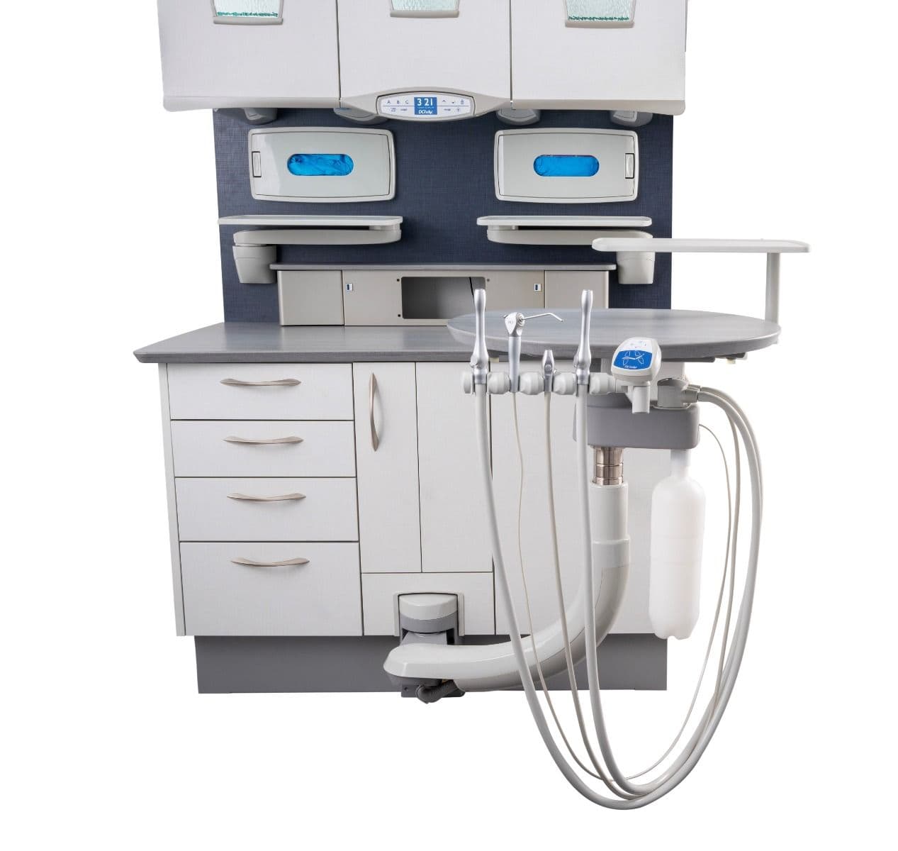 - DR4550 12 o’clock Cabinet Mount Delivery System w/ Dr & Assistant’s Instrumentation, Mobile Work Surface and Doctor’s Touchpad