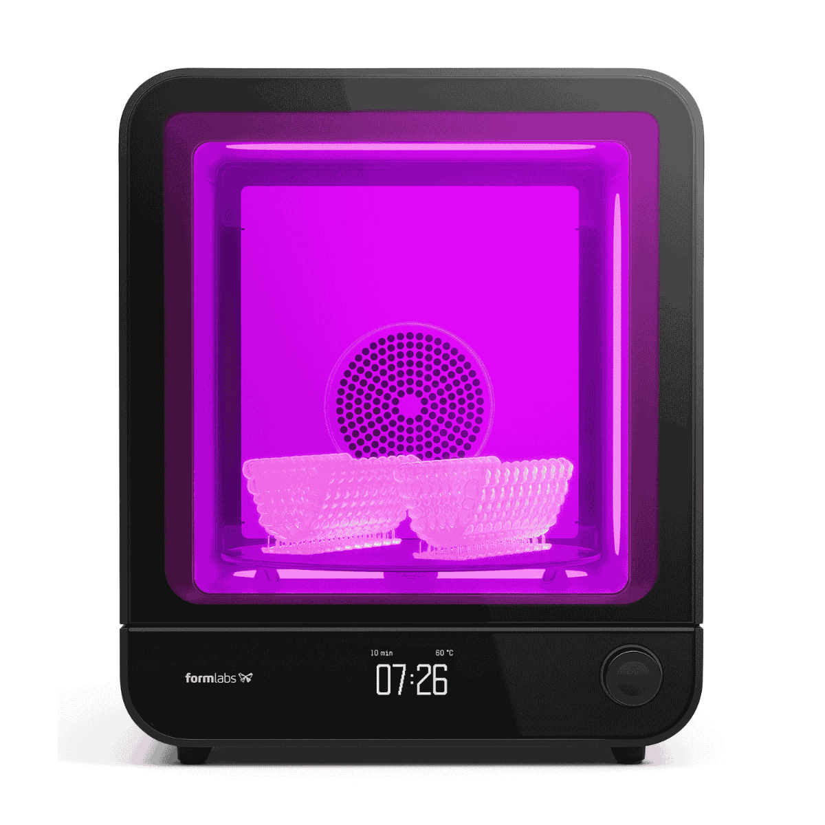 One cure unit can serve multiple Form 4B printers running continuously. Technicians no longer need to walk away from the unit due to the rapid curing of dental models.