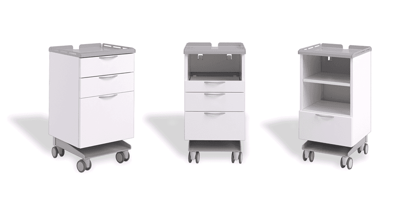 Procedure cart: The large work surface with bumpers is ideally suited to help you quickly set up and redeploy tools and materials between procedures.